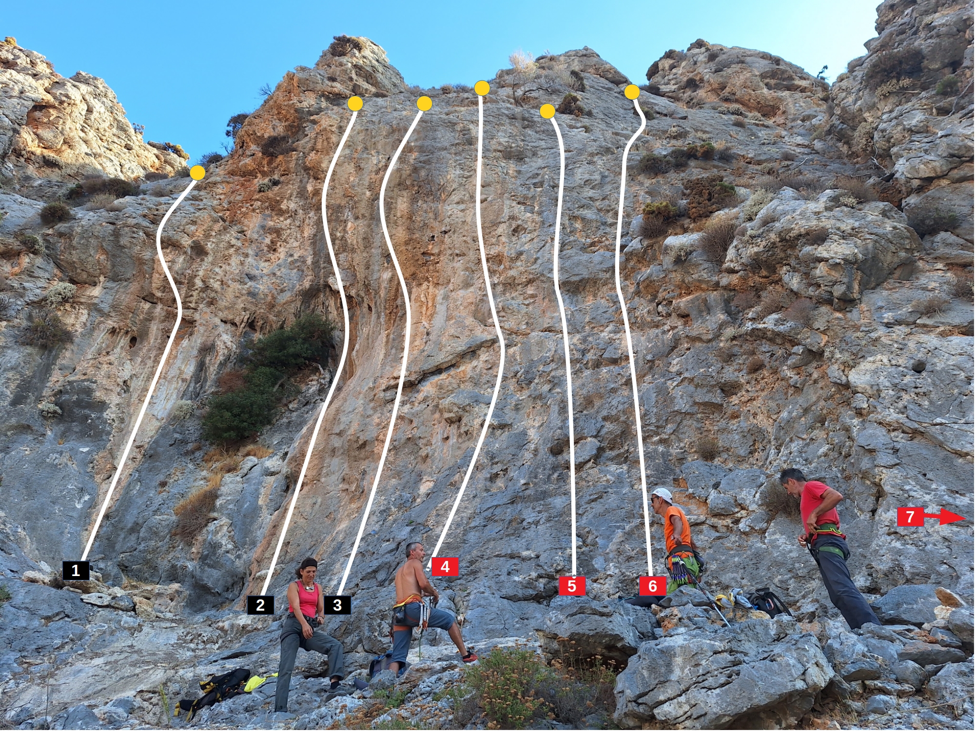 | 01 | Asino | 7b | 20m | The rock is not so good in the lower part, then a hard boulder sequence |