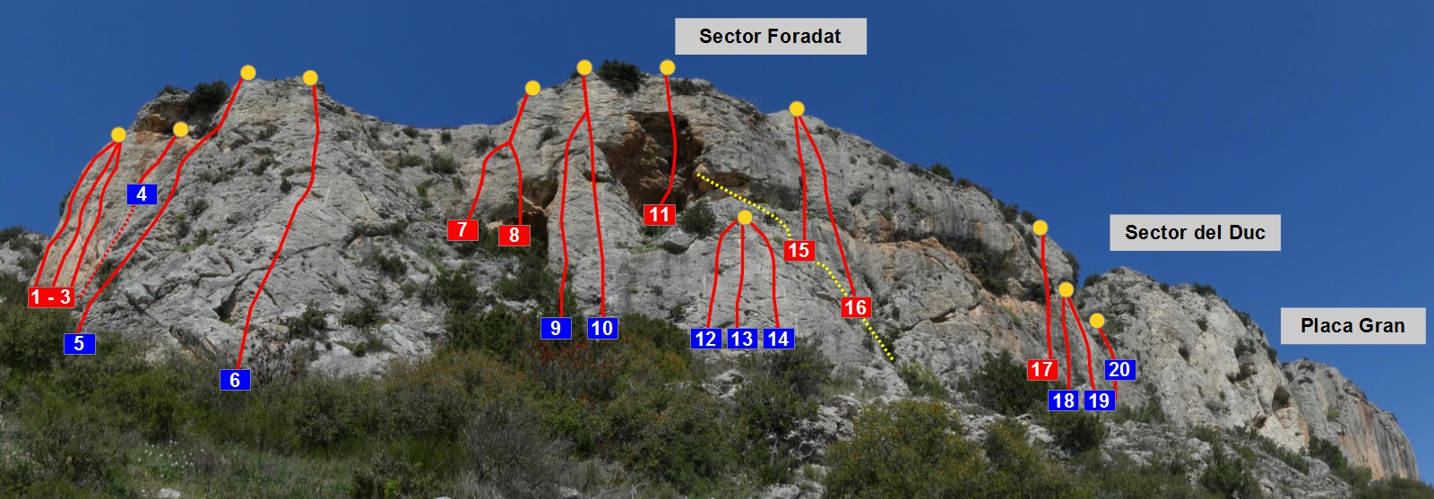 | 51 | Tres i No Res | 5c | 10m | At the left hand sector of the Braille buttress |